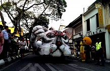 そのオープニングを飾るのが、8月第1週の土曜日(現在不定期)に行われる、ネコ・パレードです。サラワク中のネコ愛好家から各ホテルのスタッフ、サラワク・カルチュラル・ビレッジのスタッフ、レオ・クラブ、ライオンズ・クラブ、企業、学校等、様々な団体が競ってネコの仮装をして、クチンの市内を2時間ほど行進します。そして、最終地点で、各団体約5分の出し物を、両市長の前で行います。過去、日本からのネコ愛好家、仮装愛好家の人々による参加があります。エントリーは、6月頃に開始です。