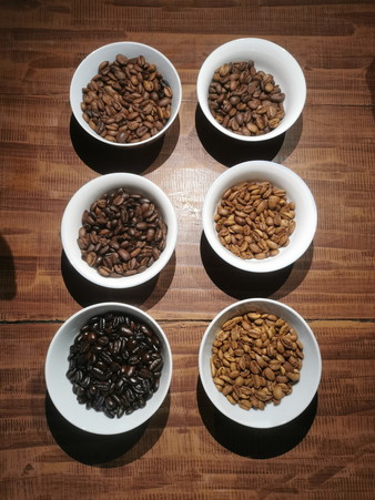 夕食後、コーヒーの自家焙煎体験。生豆から、各自で焙煎をして頂きます。