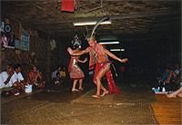 イバン族風の夕食の後は、村人と共に、地酒'トゥア'(お米のワイン)で杯を酌み交わし、伝統衣装を纏った村人による伝統舞踊で訪問者を歓迎します。さらには、村の人々による手作りの工芸品の数々の即売会が開かれます。