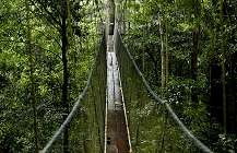 熱帯雨林では、樹木の高さが30~40mと、いつも、林冠部を見上げるだけ。しかし、本当に、植物と昆虫・動物・鳥類のエコ・システムが活発なのは、林冠部。その林冠部に、到達する為に、科学者達は、様々な努力をしてきました。その一つが、キャノピー(林冠)・ウォーク。キャノピー・ウォークの吊橋で、熱帯雨林の上層部、最もエコ・システムの活発な場所に、人間が辿り着く事が出来ます。