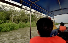 サラワク州 クチン北部のサントボン川にて、夕方のサンセットに合わせてのジャングル・クルーズ。入り江付近にいるイラワジイルカや、川沿いのマングローブに寝床を求めて現れる、テングザルやシルバーリーフモンキー等を見学し、南シナ海上に落ちる夕陽を満喫した後は、マングローブに集まるホタルの観賞。